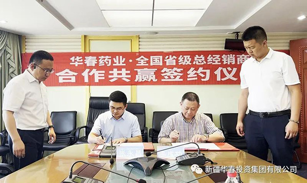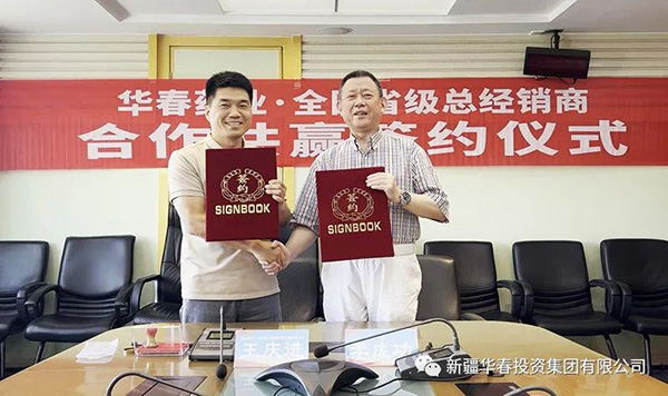 新疆華春生物藥業(yè)股份有限公司(簡稱華春生物藥業(yè))與第二批全國省級總經(jīng)銷商合作協(xié)議簽署儀式,于8月24日在新疆華春投資集團舉行。新疆華春投資集團董事局主席兼總裁、華春生物藥業(yè)董事長李成功先生,分別與江蘇龘龍醫(yī)藥科技有限公司研發(fā)負責人張永昌(江蘇省代)、北京麥爾信康科技發(fā)展有限公司總經(jīng)理王慶進(北京省代)、河北思平生物醫(yī)藥科技有限公司總經(jīng)理高春雨(河北省代),簽訂了《“參葛補腎膠囊”推廣服務(wù)協(xié)議暨省級總經(jīng)銷協(xié)議》。華春生物藥業(yè)相關(guān)技術(shù)與管理人員參加簽署儀式。