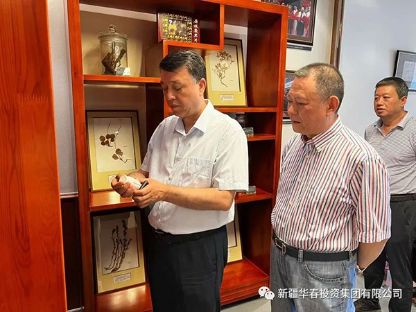 阿布力米提·伊力廳長(zhǎng)一行首先參觀了華春企業(yè)文化中心,了解華春集團(tuán)產(chǎn)業(yè)板塊和企業(yè)在新疆28年來(lái)的發(fā)展歷程、中藥創(chuàng)新藥領(lǐng)域科研成果。
